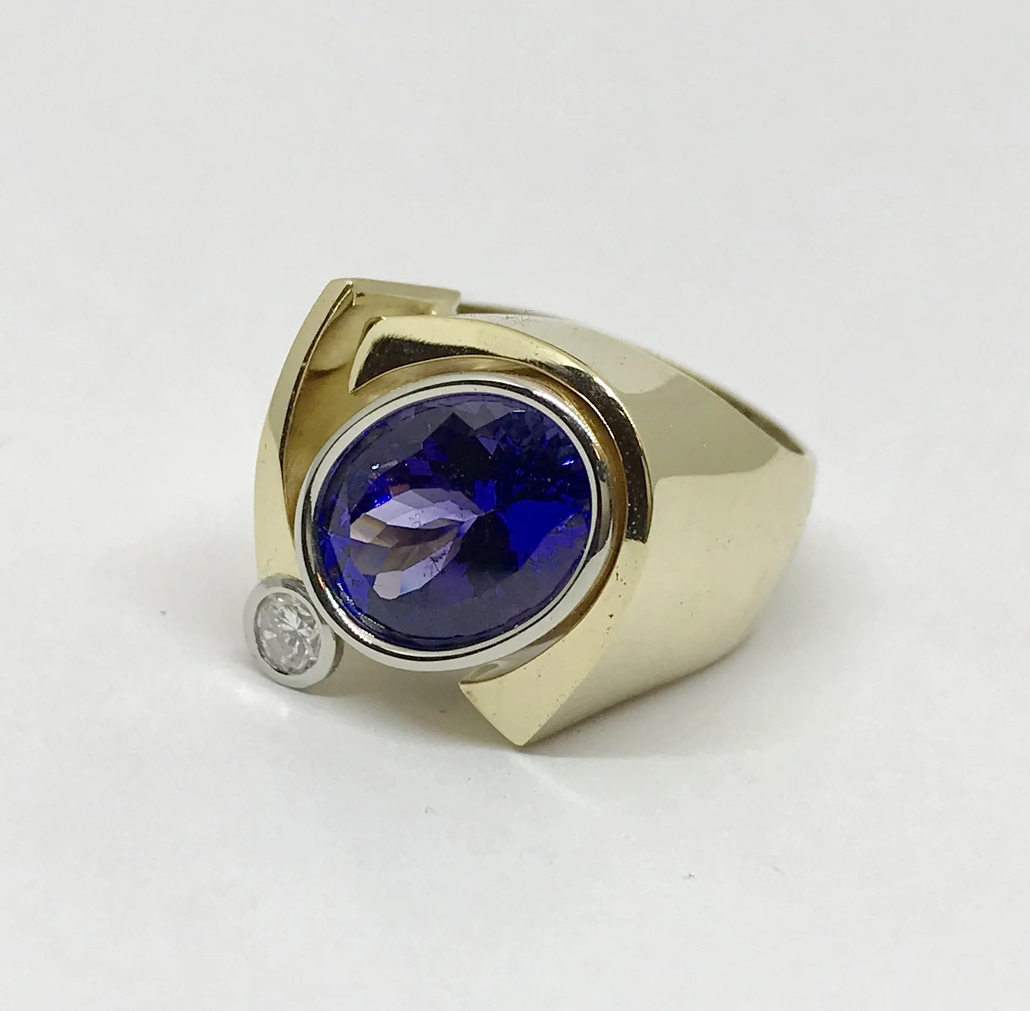Ladies blue Spinel, Sapphire & Diamond Ring